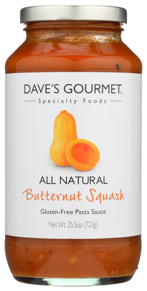 Save on Dave`s Gourmet Butternut Squash. WINNER BEST PASTA SAUCE- NEW YORK FANCY FOOD SHOW 2009 The first of its kind, our all-natural butternut-squash pasta sauce is made with squash ripened in Oregon's Willamette Valley. Paired with fresh garlic, onions and roasted red pepper, the natural sweetness and delicate flavor of the butternut squash is enhanced to provide a delicious change of pace. Tortellini, Ravioli, & Lasagna never knew they could taste so great! (Description is informational only. Please refer to the ingredients listed on the produyct and the manufacturers website prior to use. Please discuss any health questions with your health professional prior to use.)