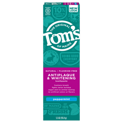 Go natural with Tom's Of Maine Toms Pprmnt Ff Tthpst (6x5.5 OZ). Antiplaque & Whitening peppermint Fluoride-Free Toothpaste Embrace the Power of Mother Nature! At Tom's of Maine that means we use authentic natural ingredients. We use zinc citrate sourced from zinc - a naturally occurring mineral and xylitol, a natural ingredient derived from birch trees or corn. Plus, natural flavoring for a taste that will make you look forward to brushing! Fluoride-free formula: Some people do not want fluoride in their toothpaste. We produce this toothpaste without fluoride because we respect our customers' diverse needs and interests. . (Note: Description is informational only. Please read the ingredient label on the product for more information and always consult your health professional with any questions prior to use.)
